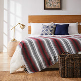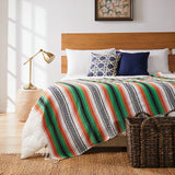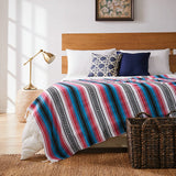 Mexican Rainbow Stripe Knitted Blanket with Tassel Geometric Pattern